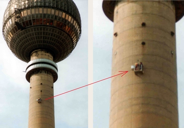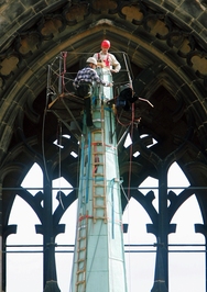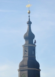 Demontage der Turmfigur in 100m Höhe nach erfolgter Bauwerksprüfung
